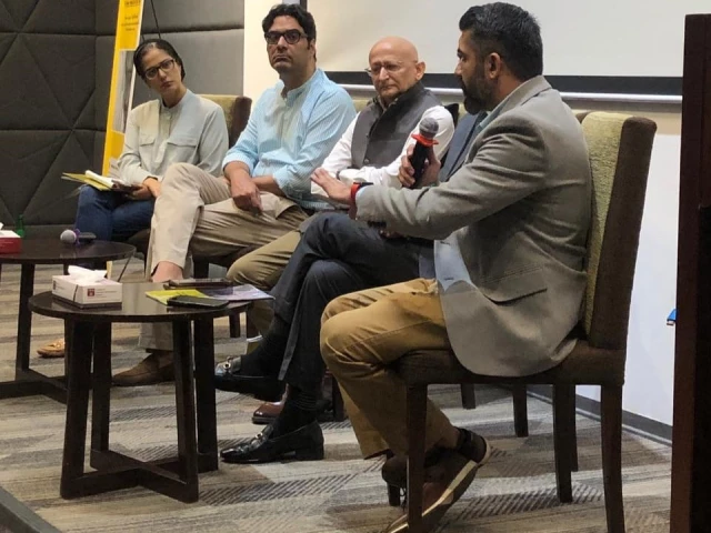 بدھ کے روز سی جے-آئی بی اے میں ہونے والے ایک پروگرام کے دوران ، آئی بی اے کے فیکلٹی ممبر اور سینئر صحافی شاہ زیب احمد نے صحافی ذاکر حسین دہر کے قتل میں قانونی لاکونا کو اجاگر کرنے والی ایک دستاویزی فلم کی اسکریننگ کے موقع پر تقریر کی۔ تصویر: ایکسپریس