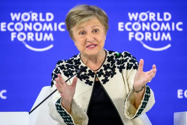 انٹرنیشنل مانیٹری فنڈ (آئی ایم ایف) کے منیجنگ ڈائریکٹر کرسٹالینا جارجیفا اشاروں کے اشارے جب وہ 23 جنوری ، 2026 کو ڈیووس میں ورلڈ اکنامک فورم (ڈبلیو ای ایف) کے سالانہ اجلاس کے دوران تقریر کرتی ہیں۔ فوٹو: اے ایف پی