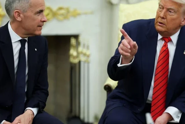 امریکی صدر ڈونلڈ ٹرمپ نے 6 مئی ، 2025 کو واشنگٹن ، ڈی سی کے وائٹ ہاؤس میں اوول آفس میں کینیڈا کے وزیر اعظم مارک کارنی سے ملاقات کی۔ رائٹرز