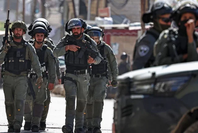 اسرائیلی سیکیورٹی فورسز کے ممبران 26 جنوری ، 2026 کو اسرائیلی مقبوضہ مغربی کنارے میں ، رام اللہ کے قریب کافر عقاب کے پڑوس میں ایک فوجی چھاپے کے دوران ایک گلی کے ساتھ ساتھ ایک گلی کے ساتھ گشت کرتے ہیں۔