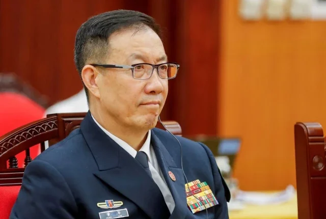چینی وزیر نیشنل ڈیفنس ڈونگ جون نے پیر ، 14 اپریل ، 2025 کو ہنوئی ، ویتنام میں پارٹی سنٹرل کمیٹی کے دفتر میں ایک اجلاس میں شرکت کی۔