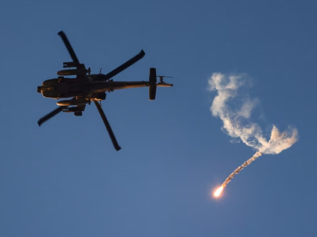 n اسرائیلی ملٹری اپاچی ہیلی کاپٹر اسرائیل اور حماس کے مابین تنازعہ کے دوران ، اسرائیل غزہ کی سرحد کے قریب اڑتا ہے ، جیسا کہ اسرائیل اور حماس کے مابین تنازعہ کے درمیان ، اسرائیل ، 25 جولائی ، 2024 سے دیکھا گیا ہے۔