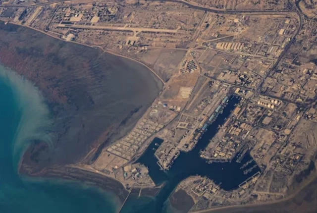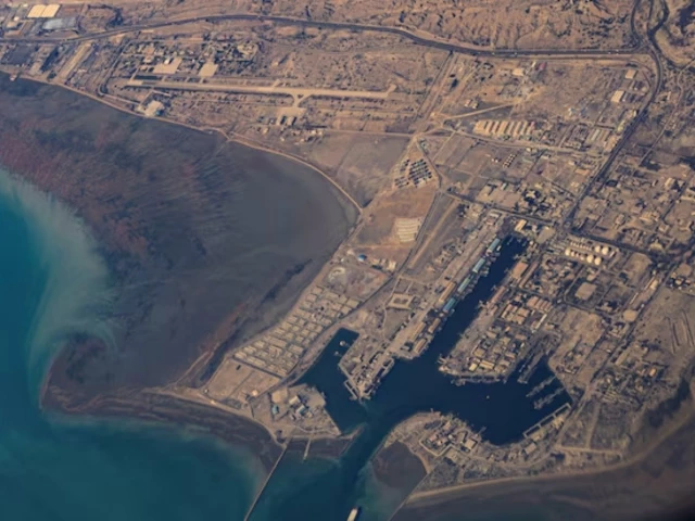 10 دسمبر ، 2023 کو آبنائے ہرمز میں ایرانی ساحل اور بندرگاہ آف بندر عباس کا ایک فضائی نظارہ۔ تصویر: رائٹرز