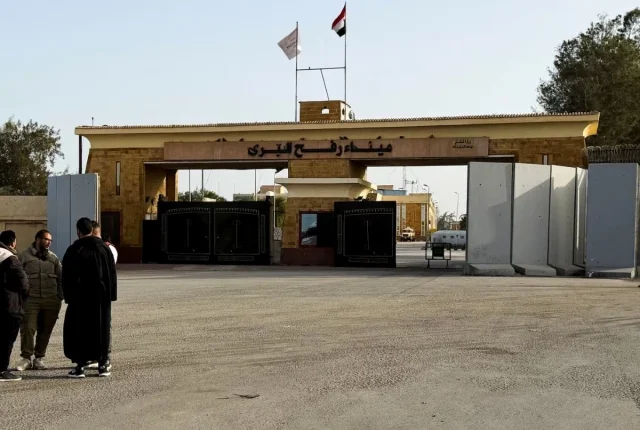 27 جنوری ، 2026 کو مصر ، مصر میں ، مصر اور غزہ کی پٹی کے مابین رافاہ بارڈر کراسنگ کے قریب لوگ کھڑے ہیں۔ تصویر: رائٹرز