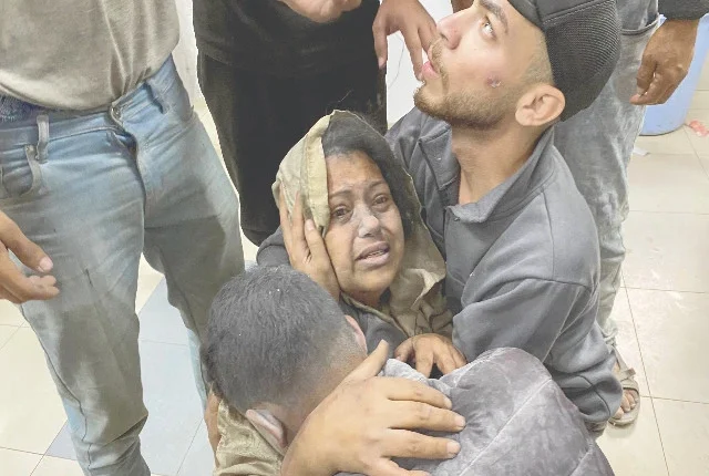 فلسطینی جو اسرائیلی میں زخمی ہوئے تھے وہ خان یونس میں بے گھر ہونے والے خیموں پر حملہ کرتے ہیں ، جنوبی غزہ کی پٹی کے ناصر اسپتال پہنچنے کے بعد وہ رد عمل ظاہر کرتے ہیں۔ تصویر: اے ایف پی