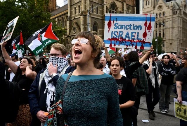 سڈنی میں ، ہزاروں افراد شہر کے وسطی کاروباری ضلع کے ایک چوک میں جمع ہوئے ، تقریریں سن رہے تھے اور فلسطین کے حامی نعرے لگاتے تھے۔
