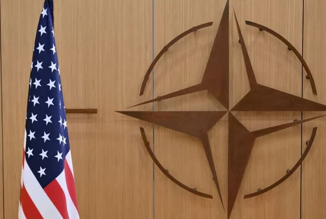اس تصویر میں شمالی اٹلانٹک ٹریٹی آرگنائزیشن (نیٹو) کے لوگو اور برسلز ، بیلجیم میں نیٹو ہیڈ کوارٹر میں امریکی پرچم 17 فروری ، 2025 کو دکھایا گیا ہے۔ تصویر: رائٹرز