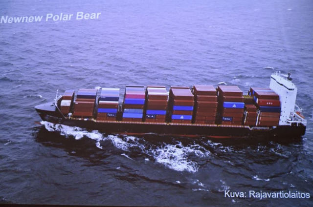 فینیش بارڈر گارڈ کی ہانگ کانگ کی ایک ہانگ کے رجسٹرڈ کارگو جہاز ‘نیوز پولر بیئر’ کی تصویر ، جسے بالٹکونیکٹر گیس لائن کے قریب جاتے ہوئے دیکھا گیا تھا ، 8 اکتوبر ، 2023 کو ، فین لینڈ اور ایسٹونیا کے ہیڈکونیا اور ایسٹونیا کے مابین بالٹکونیکٹر گیس لائن پر ممکنہ حملے کی مشترکہ پریس کانفرنس کے دوران۔ رائٹرز کے ذریعہ لیہٹیکوا/ہیککی سوککوما لائسنسنگ کے حقوق حاصل کرتے ہیں