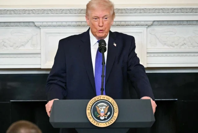 امریکی صدر ڈونلڈ ٹرمپ 20 فروری 2026 کو واشنگٹن ڈی سی میں وائٹ ہاؤس میں گورنرز کے ساتھ ورکنگ ناشتے کے دوران خطاب کر رہے ہیں۔ — اے ایف پی