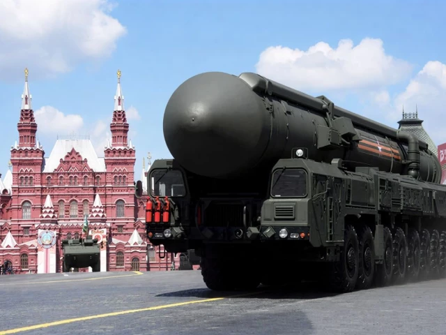 ماسکو، روس، 24 جون، 2020 میں ریڈ اسکوائر میں یوم فتح پریڈ کے دوران ایک روسی یارس بین البراعظمی بیلسٹک میزائل سسٹم چلا رہا ہے۔ تصویر: REUTERS