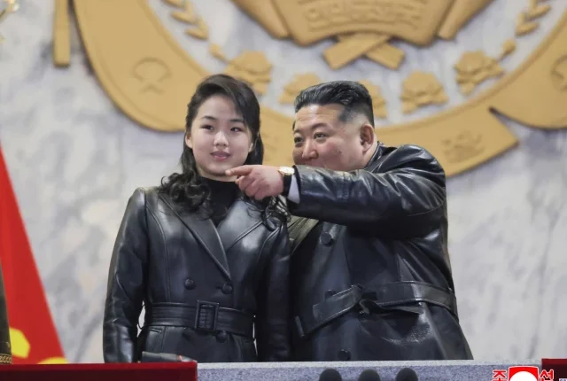 شمالی کوریا کے رہنما کم جونگ اُن نے اپنی بیٹی کے ساتھ ملٹری پریڈ میں مماثل جیکٹیں پہنائی تھیں، سرکاری میڈیا کی تصاویر نے جمعرات کو دکھایا، جس سے قیاس آرائیاں کی جا رہی ہیں کہ انہیں وارث کے طور پر تیار کیا جا رہا ہے۔