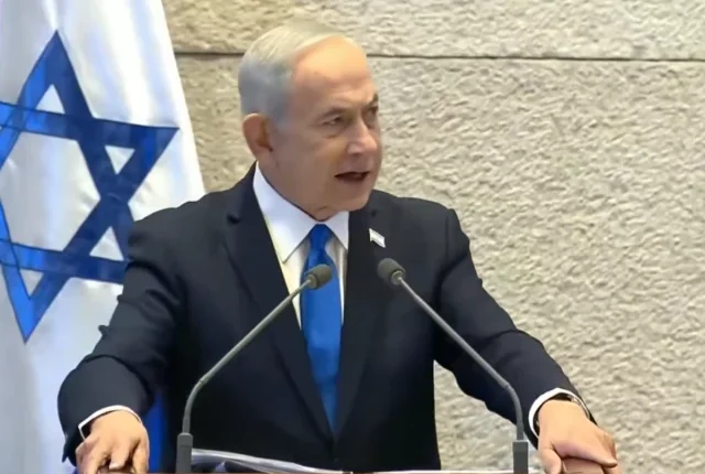اسرائیلی وزیر اعظم بنجمن نیتن یاہو 26 فروری 2026 کو کنیسٹ سے خطاب کر رہے ہیں۔ تصویر: اسکرین گراب