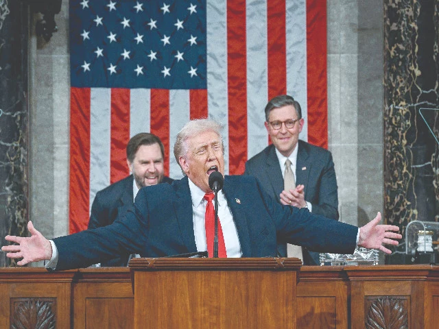 امریکی صدر ڈونلڈ ٹرمپ نے واشنگٹن میں کانگریس کے مشترکہ اجلاس سے پہلا اسٹیٹ آف دی یونین خطاب کیا۔ فوٹو: اے ایف پی