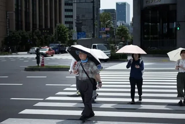 ٹوکیو میں سڑک پر چلتے ہوئے لوگ چھتری پکڑے ہوئے ہیں۔ – اے ایف پی
