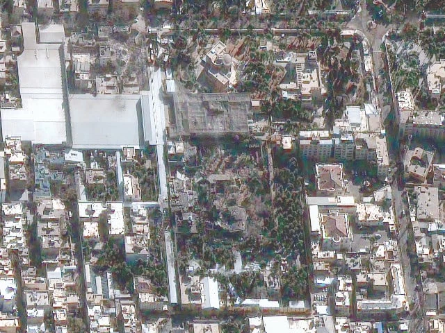 تہران میں امریکی اسرائیل کے مشترکہ فضائی حملے کے بعد ایرانی سپریم لیڈر آیت اللہ علی خامنہ ای کی تباہ شدہ رہائش گاہ کی ایک سیٹلائٹ تصویر۔ تصویر: رائٹرز ایس