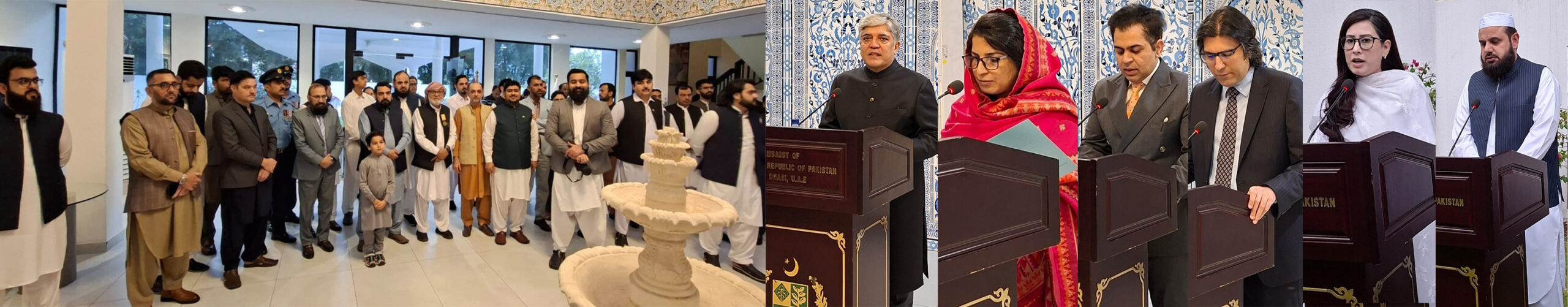 سفیرپاکستان شفقت علی خان نے اس موقع پر اپنے مختصرخطاب میں برصغیر کے مسلمانوں کی طویل جدوجہد اور عظیم قربانیوں کو خراجِ تحسین پیش کیا جن کے نتیجے میں پاکستان معرضِ وجود میں آیا۔ انہوں نے موجودہ چیلنجز سے نمٹنے اور ایک مستحکم و خوشحال پاکستان کی تعمیر کے لیے اتحاد، رواداری اور ہم آہنگی کی اہمیت پر زور دیا۔