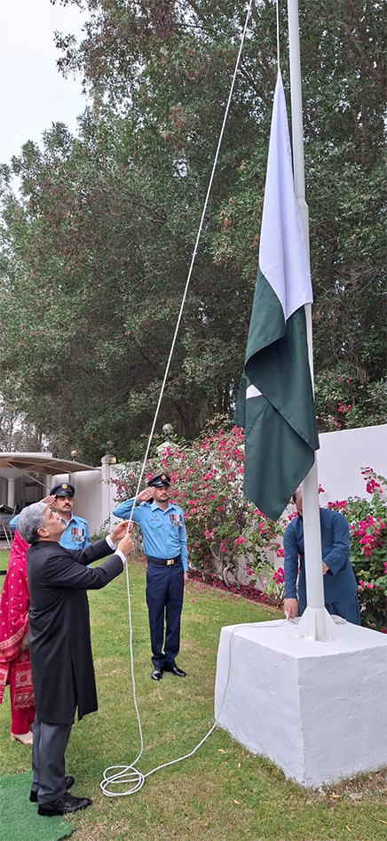 سفیرپاکستان شفقت علی خان نے قومی ترانہ کی دھن پرپرچم کشائی کی رسم اداکی۔