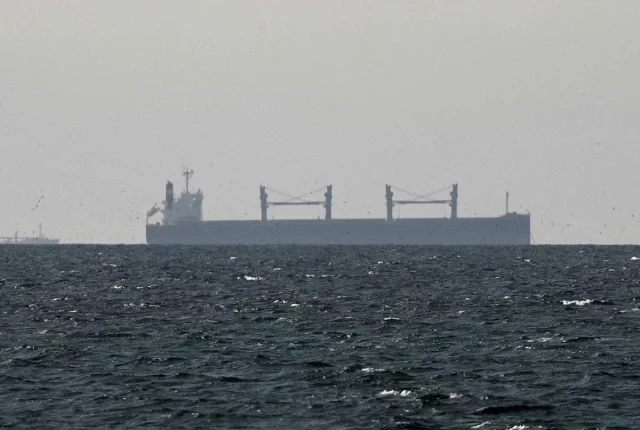 خلیج میں ایک مال بردار جہاز، آبنائے ہرمز کے قریب، جیسا کہ شمالی راس الخیمہ سے، عمان کی مسندم حکومت کی سرحد کے قریب، متحدہ عرب امارات میں، 11 مارچ، 2026 کو، ایران کے ساتھ امریکہ اسرائیل تنازعہ کے درمیان دیکھا جا رہا ہے۔ تصویر: REUTERS