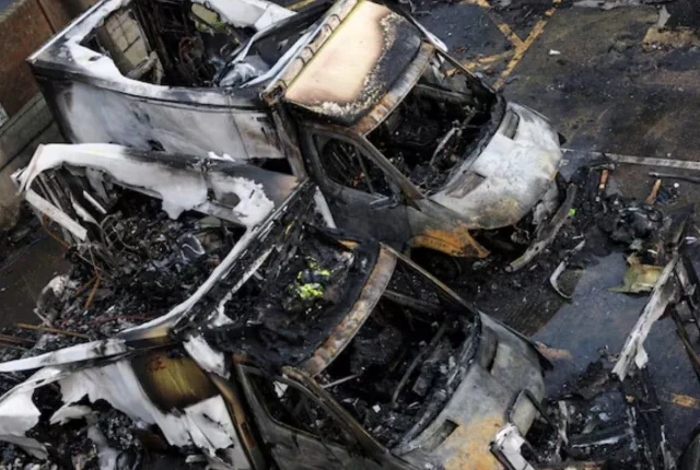 ایمبولینسوں کو 23 مارچ کو آگ لگا دی گئی تھی جسے برطانوی وزیر اعظم کیئر سٹارمر نے "سخت صدمہ پہنچانے والے سام دشمن آتشزنی کے حملے” کے طور پر بیان کیا تھا۔