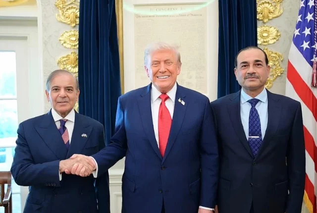 وزیر اعظم شہباز، فیلڈ مارشل منیر اور امریکی صدر ڈونلڈ ٹرمپ وائٹ ہاؤس میں تصویر: پی ایم او ایکس اکاؤنٹ
