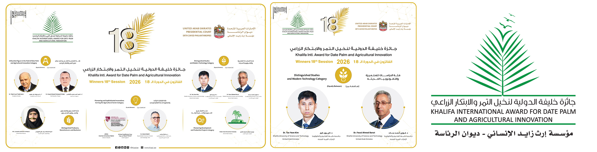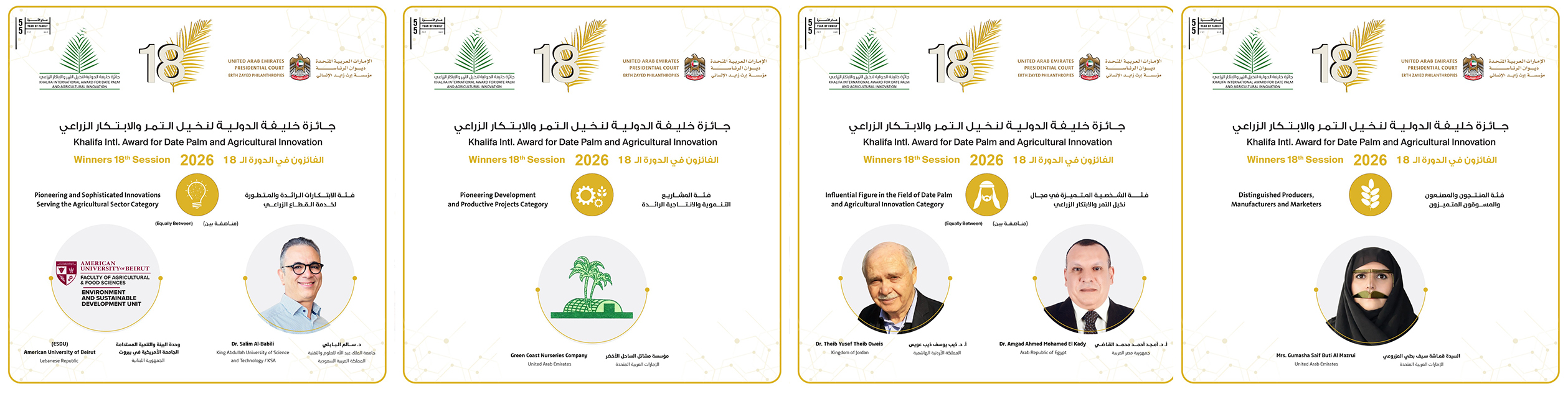 خلیفہ انٹرنیشنل ایوارڈ برائے کھجور اور زرعی اختراع 2026 کے 18ویں سیشن کے فاتحین کا اعلان۔
