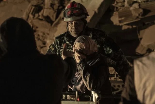 ریسکیو اہلکار اس جگہ پر کام کر رہے ہیں جس پر اسرائیل نے بمباری کی تھی۔ تصویر: انادولو