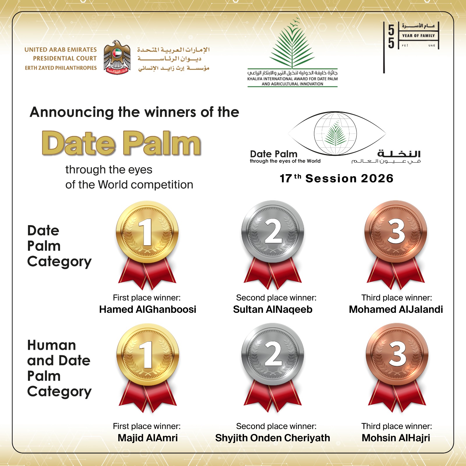 "دنیا کی نظروں میں کھجورکادرخت” فوٹوگرافی مقابلہ 2026کے 17ویں ایڈیشن کے فاتحین کا اعلان