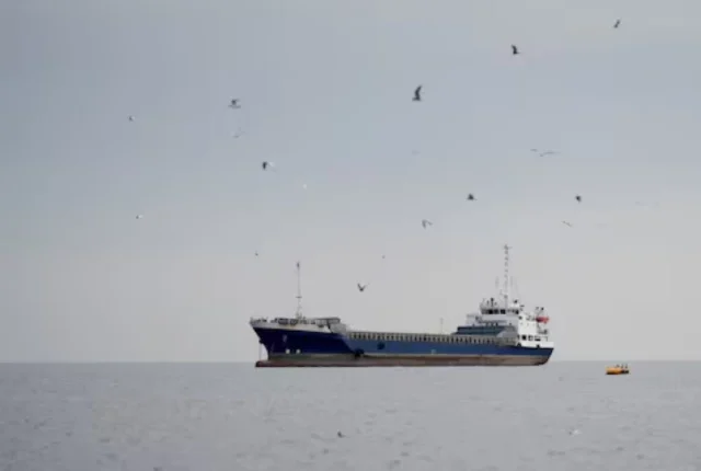 عمان کے مسندم صوبے کے ساحل سے دور آبنائے ہرمز میں ایک بحری جہاز۔ فوٹو: رائٹرز