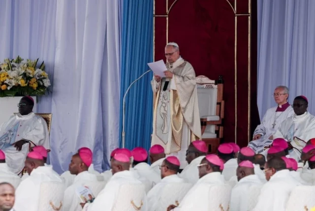 پوپ لیو XIV نے 18 اپریل 2026 کو یاؤنڈے، کیمرون کے Yaounde-Vile Airport پر ایک مقدس اجتماع منعقد کیا۔ REUTERS