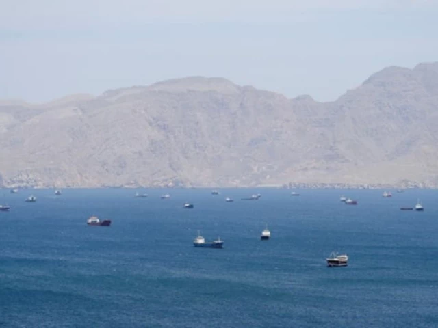 آبنائے ہرمز، مسندم، عمان میں بحری جہاز، 27 اپریل 2026۔ REUTERS