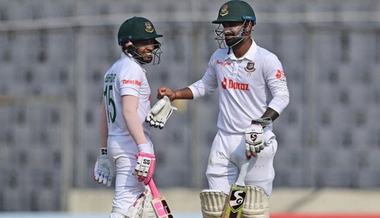 تاہم لٹن داس اور مشفق الرحیم نے چھٹی وکٹ کے لیے 253 رنز کی ناقابل شکست شراکت قائم کرکے دن کے اختتام تک اسکور 277 رنز تک پہنچادیا۔