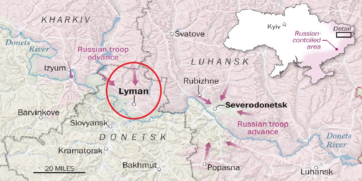 روس نے مشرقی یوکرین کے ایک اہم اسٹرٹیجک قصبے پر قبضہ کر لیا ہے۔ لیمن نامی قصبے پر قبضے سے روسی افواج کو ڈونباس خطے کے مشرق اور جنوب مغرب میں سڑکوں اور ریلوے کے نیٹ ورک کو کنٹرول کرنے میں مدد ملے گی۔ یوکرینی دارالحکومت کیف نے بھی اس خطے میں روسی پیش قدمی کا اعتراف کیا ہے۔