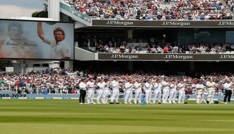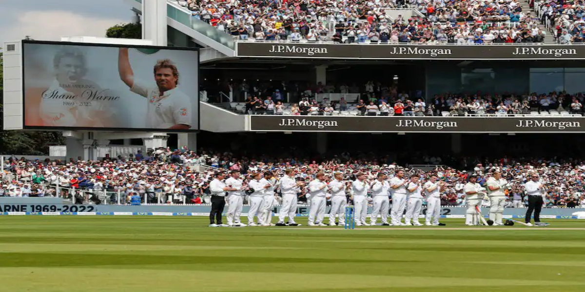 انگلینڈ بمقابلہ نیوزی لینڈ کے مابین سیریز کے پہلے ٹیسٹ میں لارڈز کرکٹ گراؤنڈ پر شین وارن کو خراج تحسین پیش کرنے کے لئے 23 سیکنڈز تک روکا گیا۔