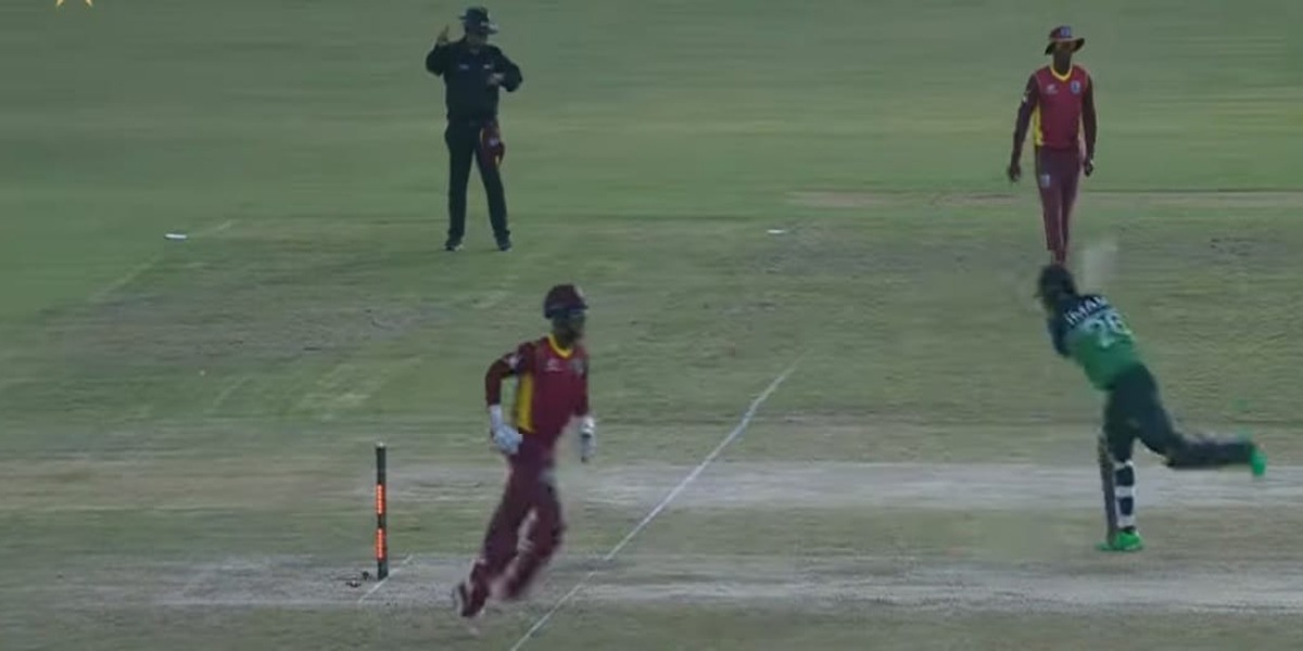 امام نے پلٹ کر واپس اپنی کریز میں پہنچنے کی کوشش کی مگر وکٹ کیپر شائی ہوپ نے امام کے کریز میں پہنچنے سے قبل ہی بیلز اڑا دیں۔