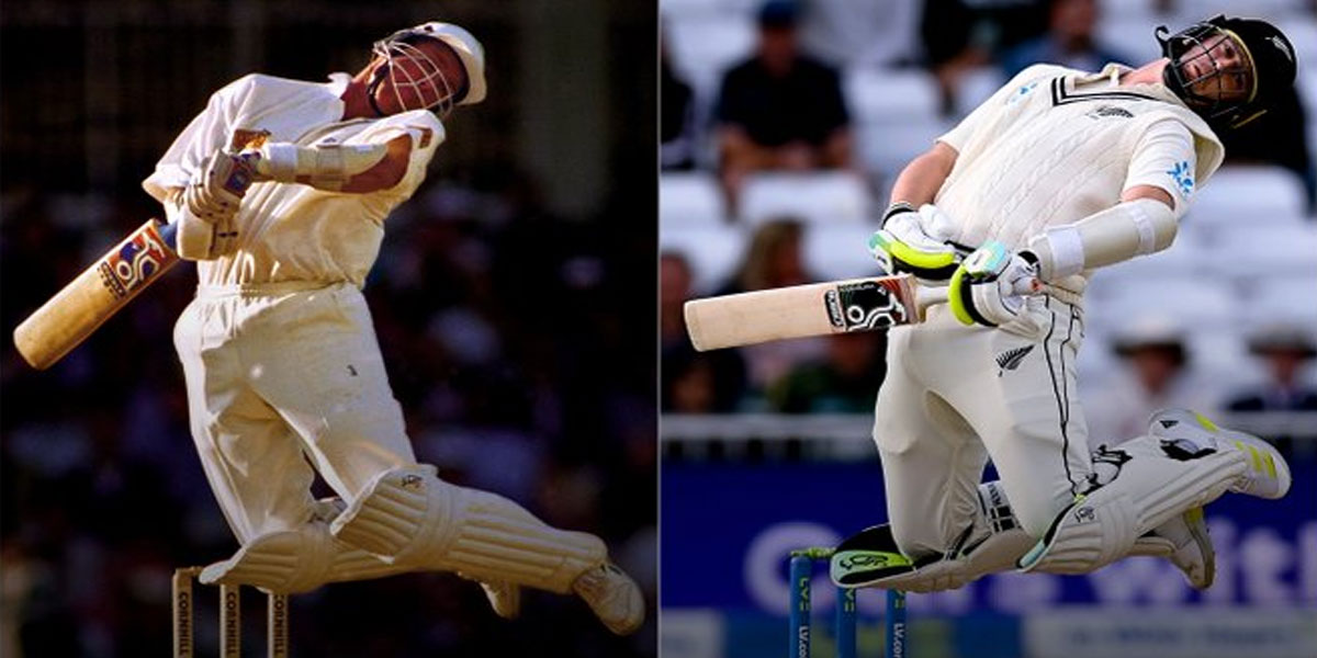 بالکل ایسی ہی تصویر آج سے بائیس سال قبل یعنی 1996 میں انگلینڈ کے ایلک اسٹیورٹ  کی بھی وائرل ہوئی تھی جب وہ وسیم اکرم کی باؤنسر سے بچنے کے لیے بلکل اسی انداز میں اچھلے تھے۔