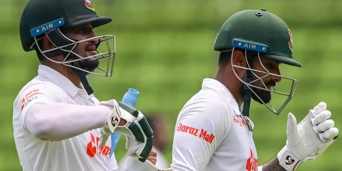 نئے ٹیسٹ کپتان شکیب الحسن نے شاندار 51 رنز بنا کر مہمانوں کے لیے ایک لڑائی فراہم کی، لیکن انھیں بہت کم مدد ملی.