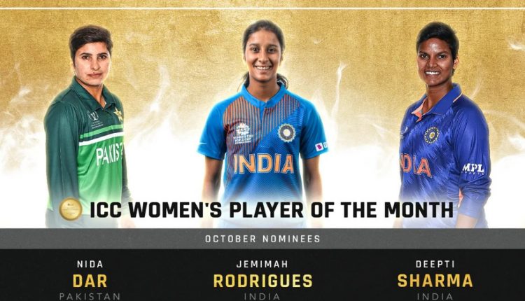 انٹرنیشنل کرکٹ کونسل نے اکتوبر 2022 کے لیے ویمنز پلیئر آف دی منتھ کی نامزدگیوں کا اعلان کردیا ہے۔