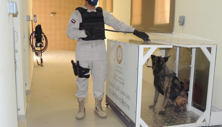 ابو ظہبی پولیس نے سیکیورٹی انسپکشن ڈیپارٹمنٹ (کے 9 ) میں پولیس ڈاگ کوکووڈ19سے محفوظ رکھنے کےلیئے آلہ تیار کیا ہے سیکیورٹی سیکٹر اور بندرگاہیں۔ سیکیورٹی امور اور بندرگاہوں کے شعبے میں سیکیورٹی انسپیکشن ڈیپارٹمنٹ کے ڈائریکٹر بریگیڈیئر جمال حبش نے بتایا کہ ایجنسی "کوویڈ 19” وبائی امراض کا مقابلہ کرنے کےحفاظتی اور احتیاطی اقدامات کی حمایت کرتی ہے جس سے سیکیورٹی انسپیکشن ٹیموں کو تفویض کردہ کاموں سے پہلے اور بعد میں پولیس کتوں اور ان کے تربیت دہندگان کی حفاظت کو یقینی بنایا جاسکے۔