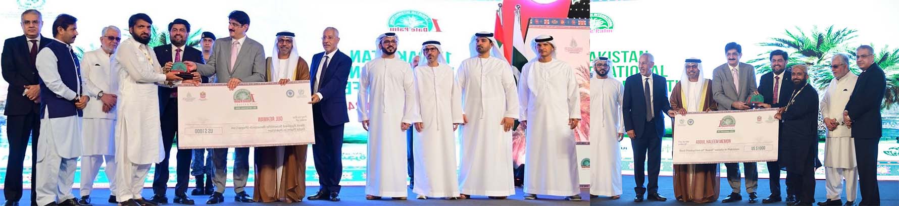 جبکہ پاکستان میں کھجور کی کاشت اور کھجور کی پیداوار کے شعبے میں خدمات انجام دینے والی تین بہترین شخصیات کو اعزاز سے نوازا گیا: