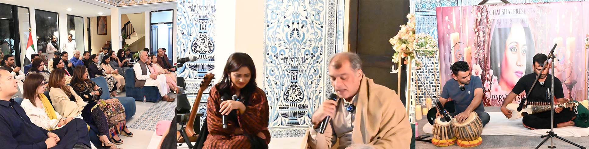 ابوظہبی(نیوزڈسیک)::گزشتہ رات سفارت خانہ پاکستان ابوظہبی میں چائے شائے ریسٹورنٹ عجمان کے تعاون سے لیجنڈری پاکستانی شاعرہ پروین شاکر کو خراج عقیدت پیش کرنے کے لیے "گل پروین” کے عنوان سے ایک یادگار تقریب کا انعقاد کیاگیا۔ جس میں شاعری، موسیقی اور روایتی پاکستانی کھانوں کے حسین امتزاج کے ساتھ پاکستان کی ایک بلند پایہ ادبی شخصیت پروین شاکر کی لازوال ادبی میراث کو بھرپور انداز میں منانے کا موقع فراہم کیا ۔