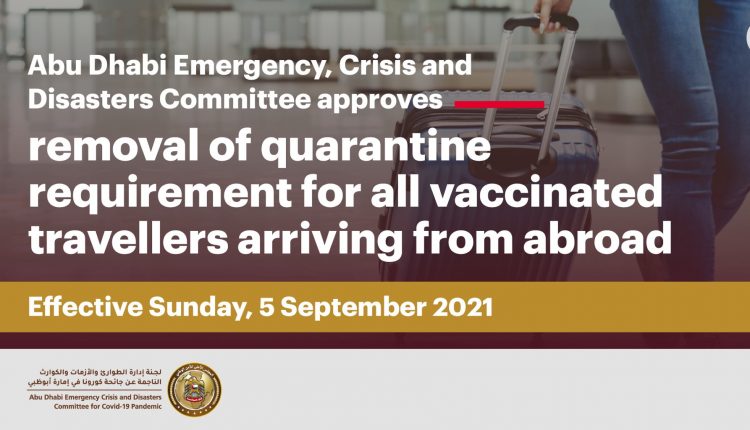 حکومت ابوظہبی کاایک اوراحسن اقدام ،ویکسین شدہ افرادکے لیئے قرنطینہ کی پابندی ختم۔