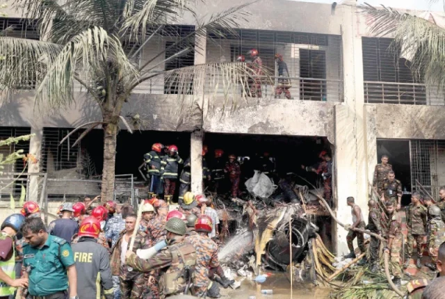 ایک فوجی ترجمان نے بتایا کہ بنگلہ دیش کی فضائیہ کی تربیت کا جیٹ پیر کے روز ایک تکنیکی مسئلے کا سامنا کرنے کے بعد دارالحکومت ڈھاکہ میں بنگلہ دیش کی فضائیہ کی تربیت کا جیٹ گر کر تباہ ہوا جب کم از کم 19 افراد ہلاک اور 164 زخمی ہوگئے۔