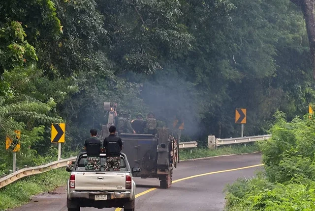 تھائی فوج نے بتایا کہ کمبوڈین فورسز نے اتوار کے روز سویلین گھروں سمیت متعدد علاقوں میں گولیاں چلائیں ، اور طویل فاصلے تک راکٹ لانچروں کو متحرک کررہی ہیں۔