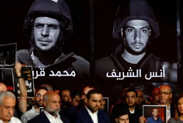 نیلے رنگ کے صحافیوں کی فلاک جیکٹس پہنے ہوئے مردوں سمیت سوگواروں نے اپنے جسموں کو اپنے جسم اٹھائے ، ان کے چہروں کے ساتھ سفید کفنوں میں لپیٹے ہوئے ، اپنی قبروں تک تنگ گلیوں کے ذریعے۔ اسرائیل نے تصدیق کی کہ اس نے شریف کو نشانہ بنایا ہے ، جسے حماس سے وابستہ ایک "دہشت گرد” کا نام دیا گیا ہے ، اور الزام لگایا ہے کہ اس نے "ایک صحافی کی حیثیت سے پیش کیا ہے”۔