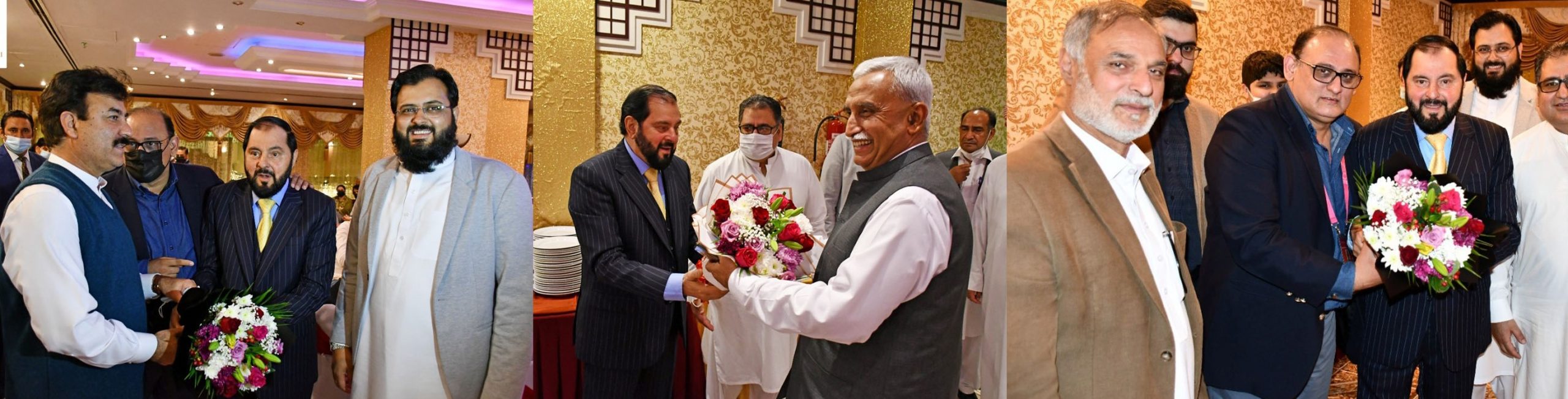 چیئرمین الابراہیمی گروپ حاجی خان زمان سرورکی جانب سے صوبائی وزیربرائے فنانس وہیلتھ سلیم تیمورجھگڑا،وزیر،محنت وثقافت شوکت یوسف زئی، سلیم اللہ بنگش کے پی کے بی او آئی وفد کے سرکاری وفدکے اعزازمیں پروقار عشایئہ تقریب کااہتمام۔