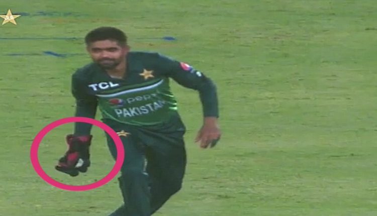 ویسٹ انڈیز کے الزاری جوزف کے شاٹ پر وکٹ کیپر محمد رضوان اپنا ایک گلو اتار کر فیلڈ کے لیے دوڑے اور گیند پکڑ کر تھرو کی، لیکن اسی اثنا میں بابر اعظم نے رضوان کا گلو اٹھا کر پہن لیا اور گیند کو پکڑ لیا، جس وجہ سے مہمان ٹیم کو 5 رنز اضافی مل گئے۔